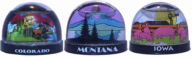 Colorado and Montana really need something better than this to be remembered with. Wouldn't you rather see the little cable car hanging over the Royal Gorge. Even one of those ubiquitous buffalo domes is preferred over purple skies and blue mountains. On the other hand, Iowa really does looks like this.